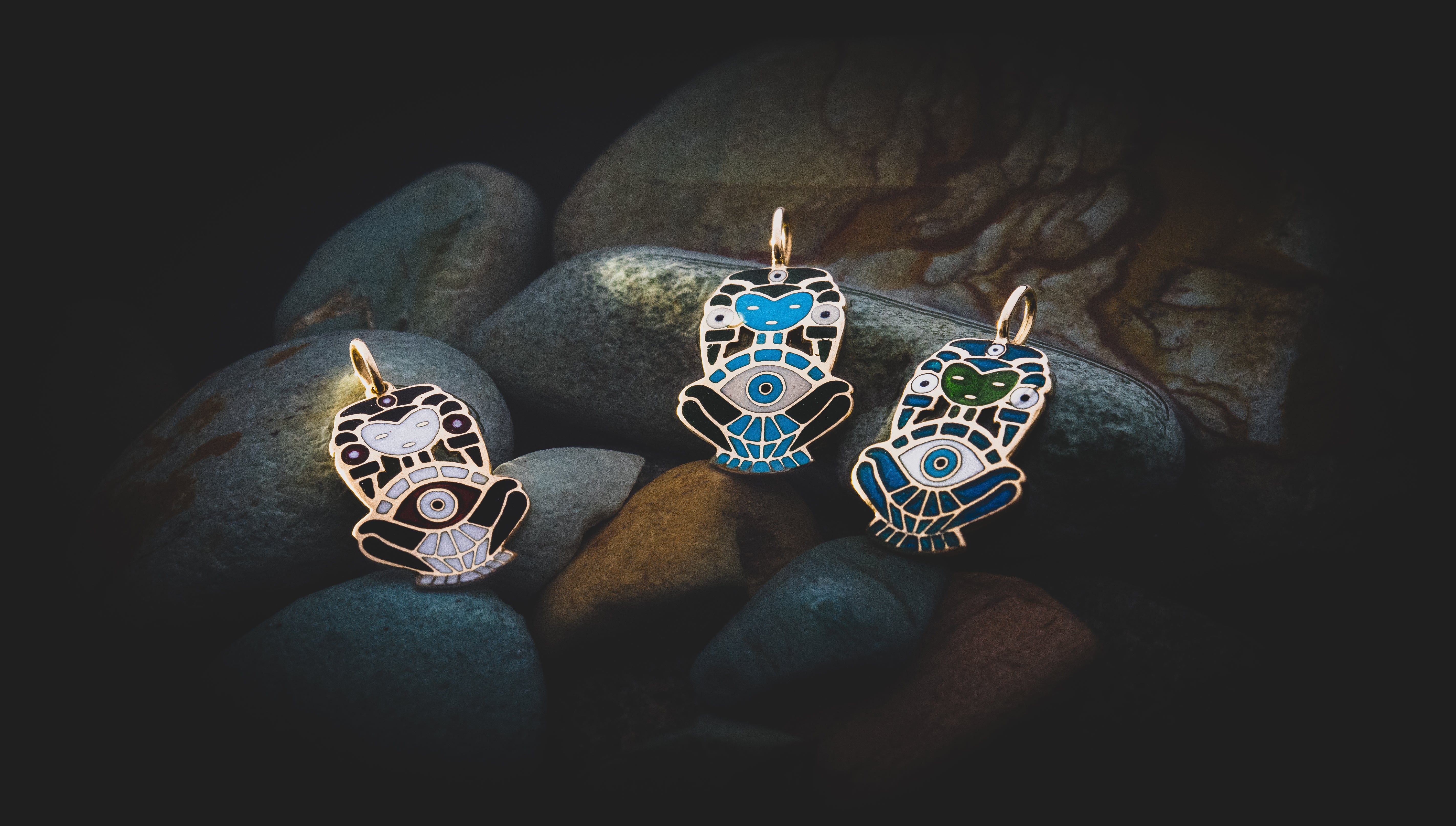 We’ve named our Atabex enamel pendants after six far-flung places we dream about: Caribbean turquoise waters, the desert sands of Cairo, Bali's lush terrains, the pink light of Jaipur, the peaceful bustle of Tokyo, and the mysterious hues of Istanbul’s greatest treasures.