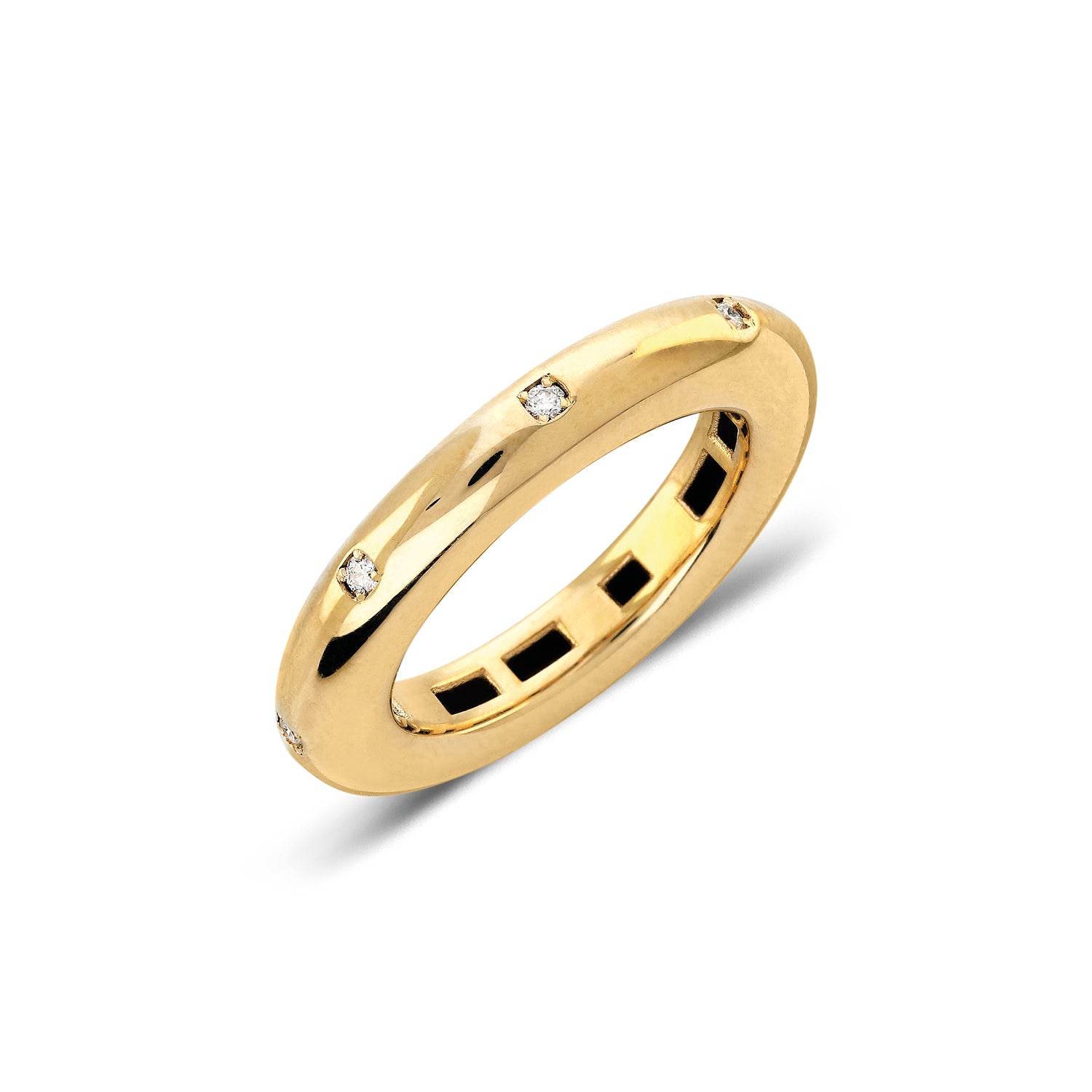 Gold can tether us as humans; it connects us to our homes, histories, and ancestors. To channel this feeling, we embraced gold’s shape-shifting qualities. Caona is where soft and hard meet. Sinuous shapes and unexpected asymmetry merge with geometric contours and intricate patterns in 14K gold. We see gilded interpretations of crescent moons and knowing eyes, and ancestral carvings reimagined with striking gemstones resting on gleaming surfaces.