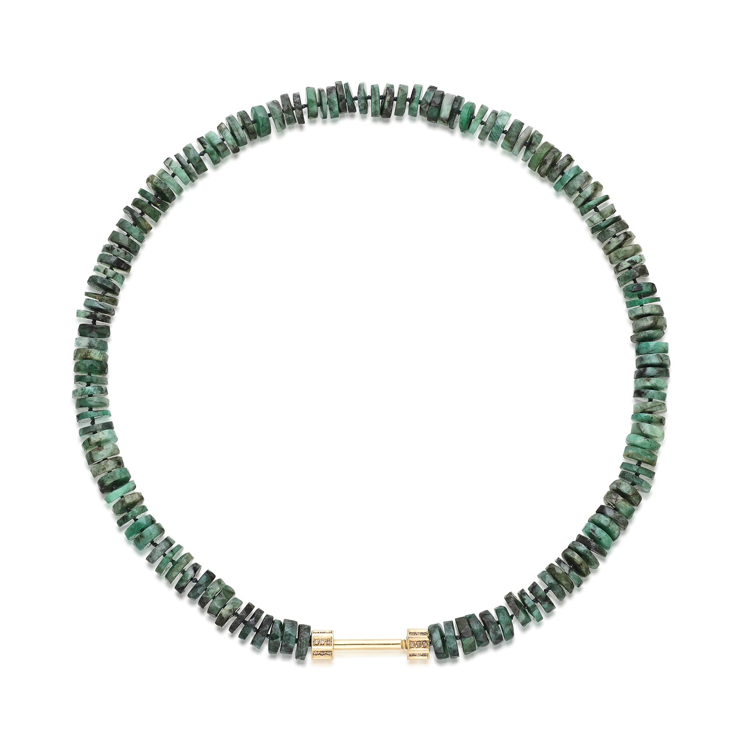 16" faceted disc emerald bead strand, 0.28ctw champagne diamonds, 14K yellow gold