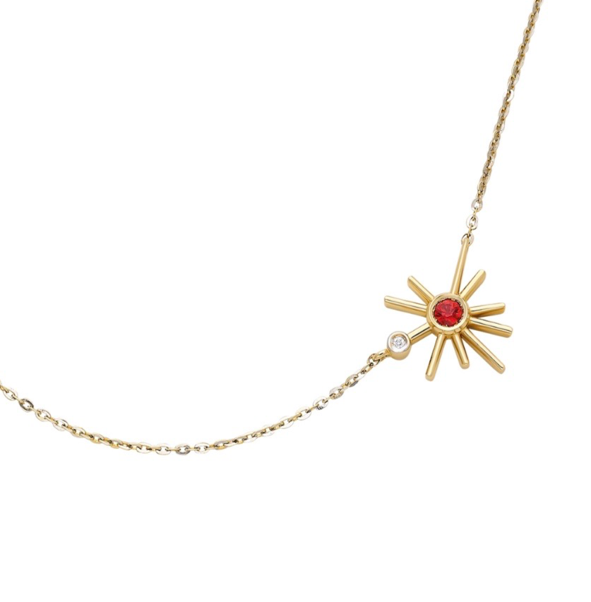 ¡Buenos Días! Mini Sun Necklace - Orange Sapphire and Diamond