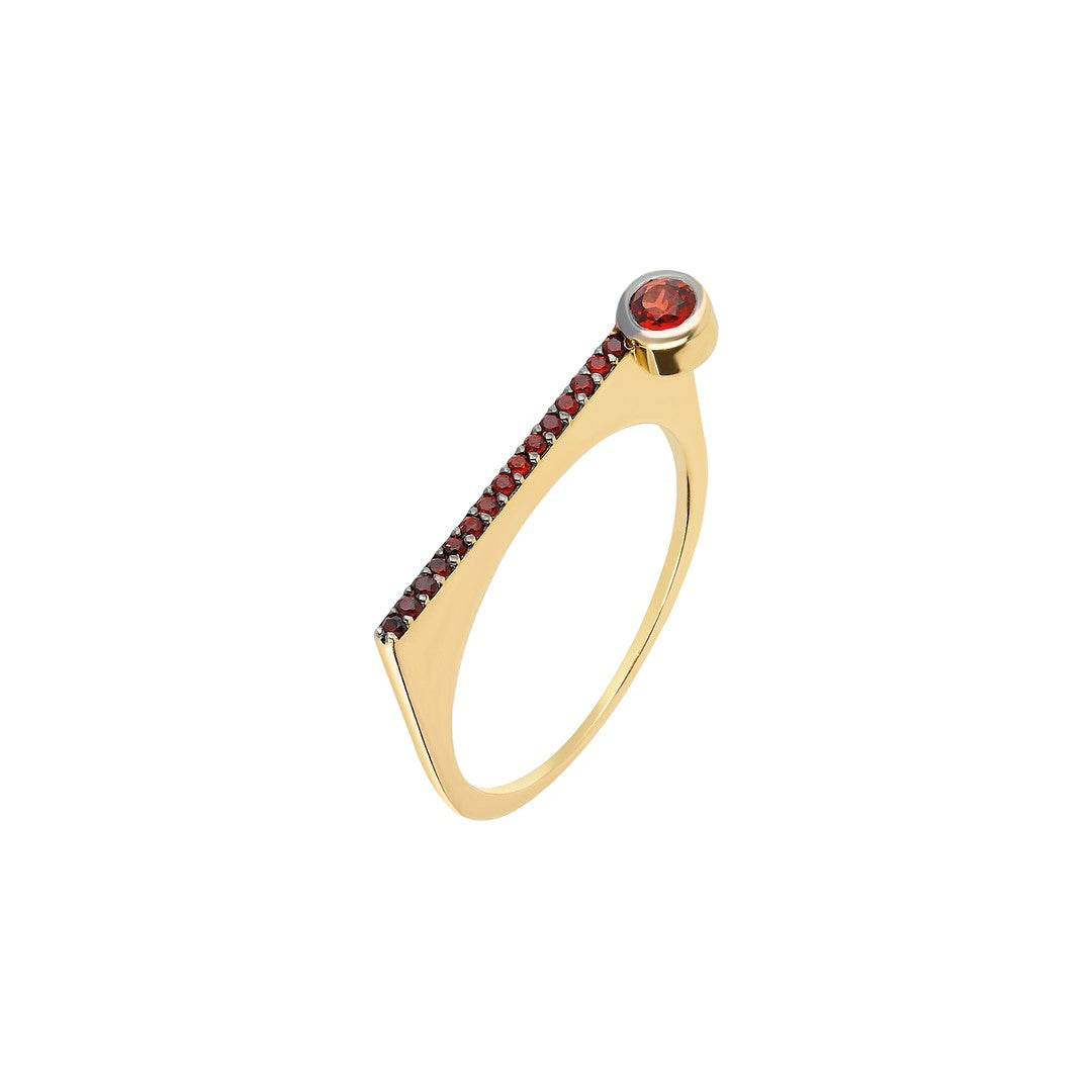 ¡Buenos Días! “Horizon” Ray Ring in Yellow Gold with Red Garnets (Large Bezel)