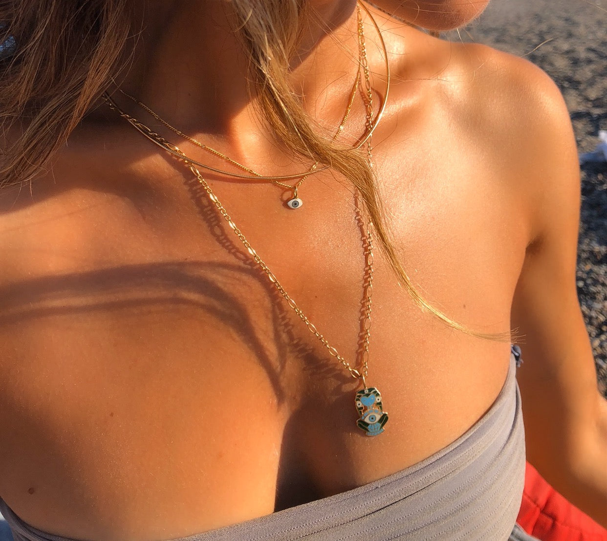We’ve named our Atabex enamel pendants after six far-flung places we dream about: Caribbean turquoise waters, the desert sands of Cairo, Bali's lush terrains, the pink light of Jaipur, the peaceful bustle of Tokyo, and the mysterious hues of Istanbul’s greatest treasures.