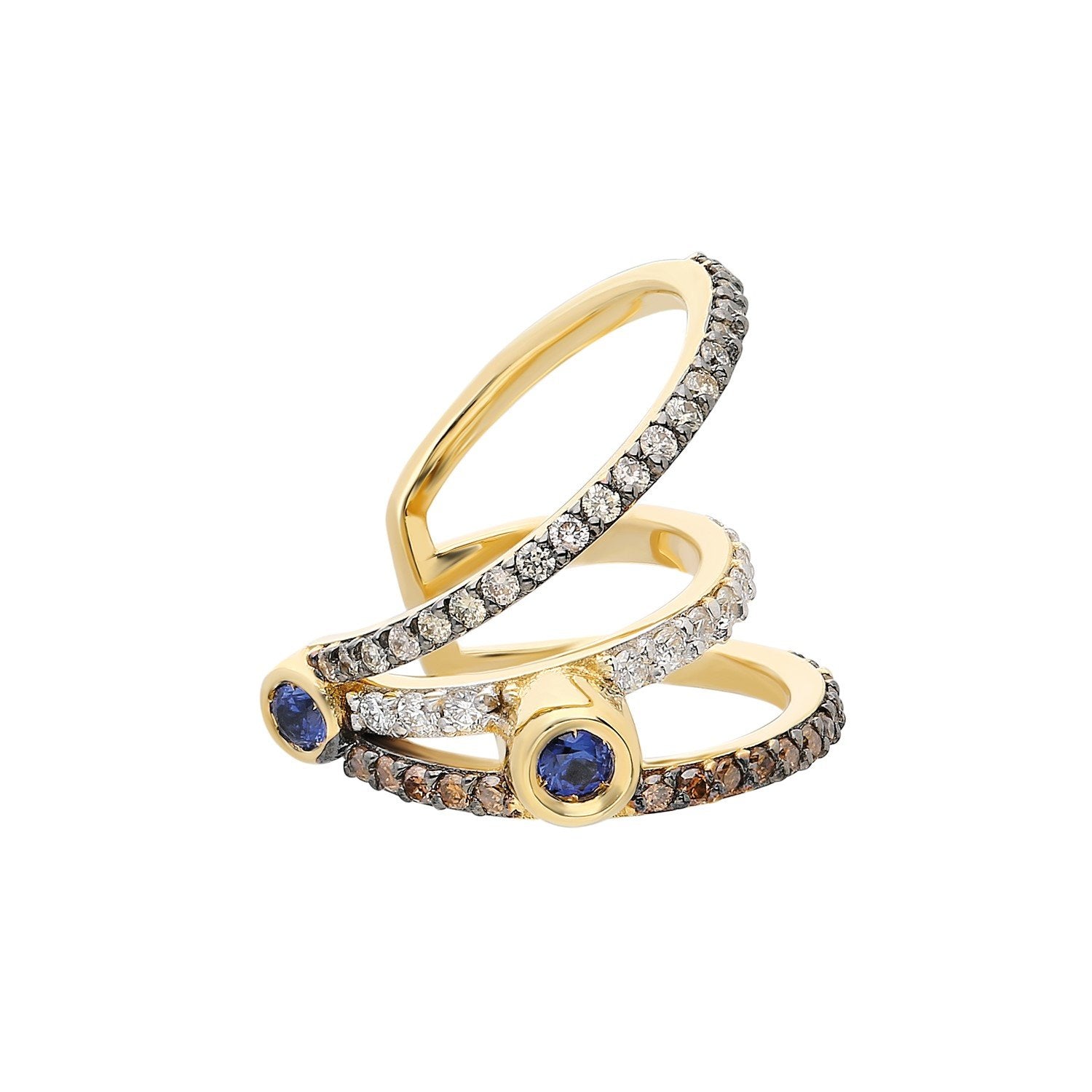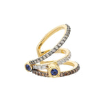 14K Yellow Gold, 0.13ctw pavé White Diamonds, 0.09ctw Cognac Diamonds, 0.09ctw Champagne Diamonds and 0.13ctw Sapphires