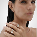 Graceful patterns of movement and gestures mimic the winding ways of a river—creating a story, an atmosphere. “Danza” is an expression of movement by way of our Txirimiri design— an oversized version featuring a total of 0.49ctw round, marquise and baguette diamonds flush-set in the twists and turns of this precious symbol.