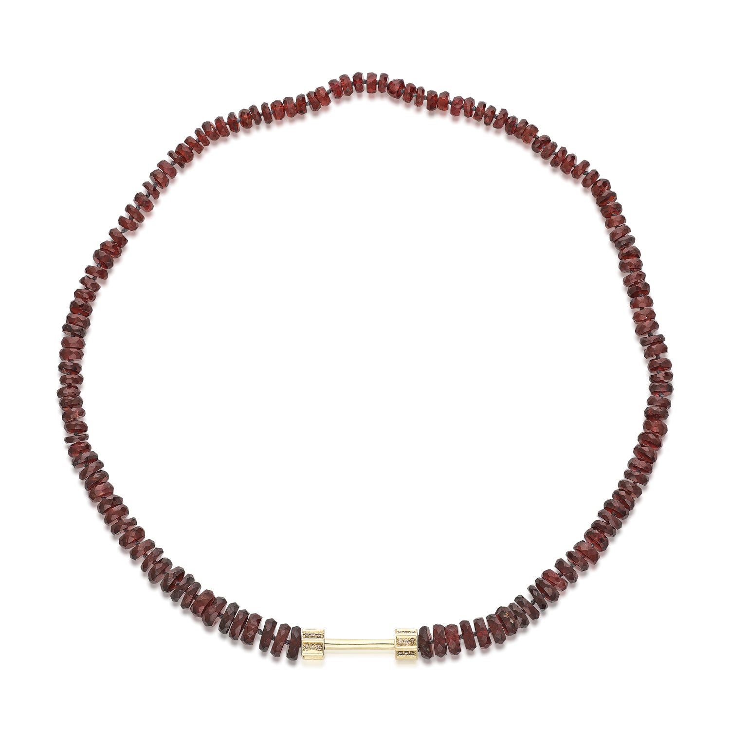 "Bosfor" Faceted Disc Bead Strand - Garnets and Cognac Diamonds