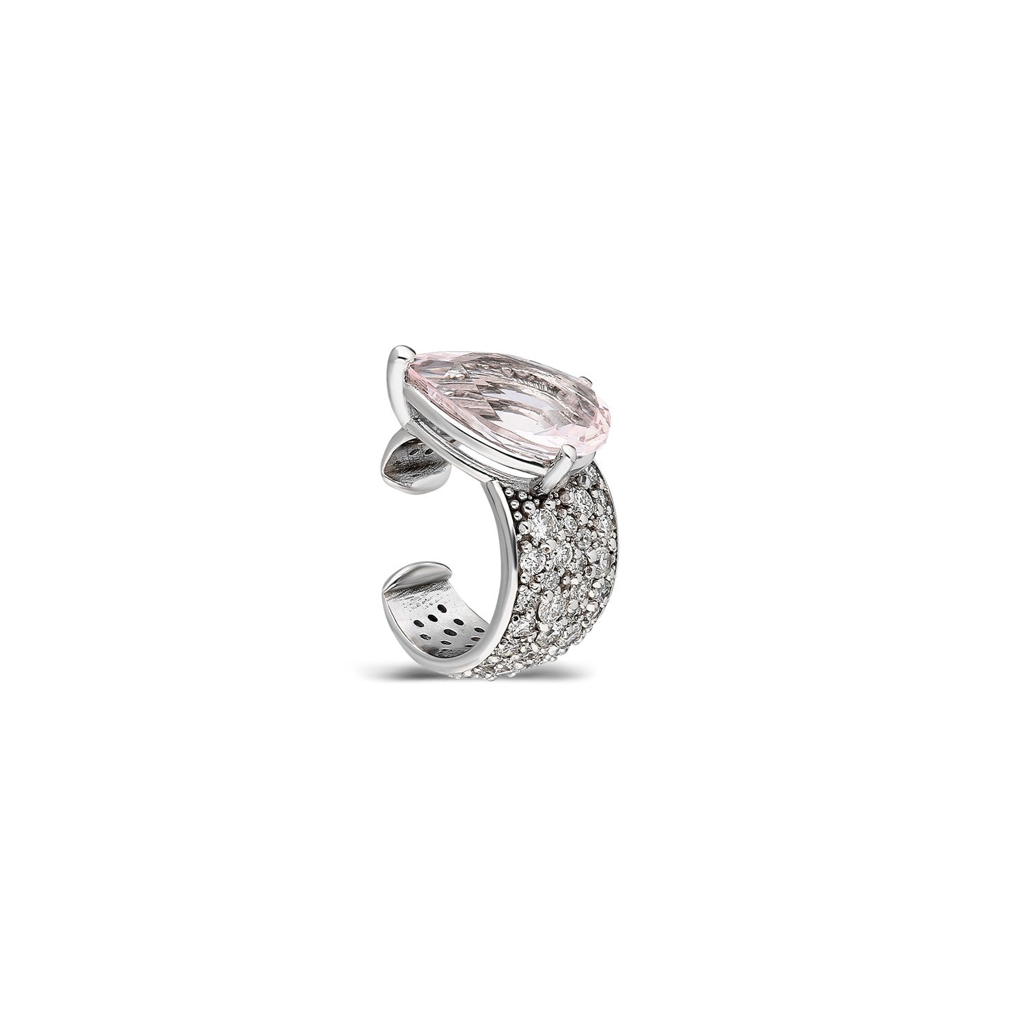 “Alma” Pavé Diamond and Pear-shaped Morganite Ear Cuff (no piercing)