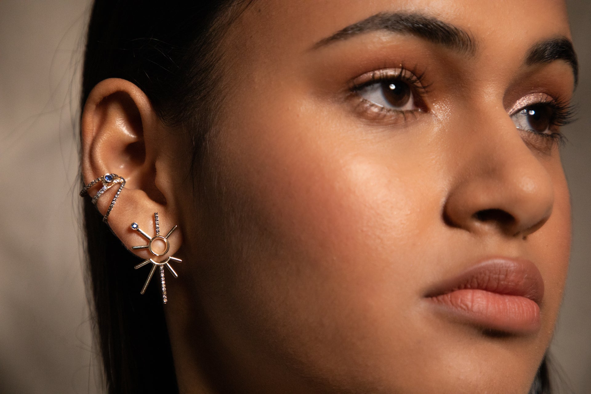 ¡Buenos Días! Cognac Diamond and Sapphire Ear Jacket