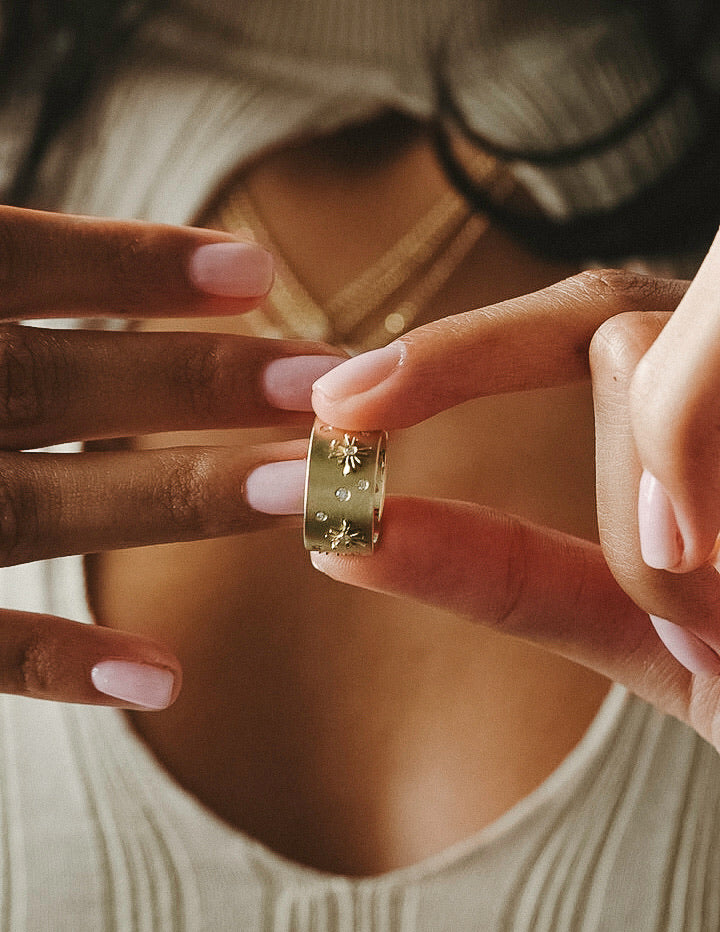 Jewelry, especially gold and precious gemstones, scratches with daily wear. We hope this means you love your pieces as much as we do. Use our pouches and boxes to store them individually and protect your jewels when not being worn.