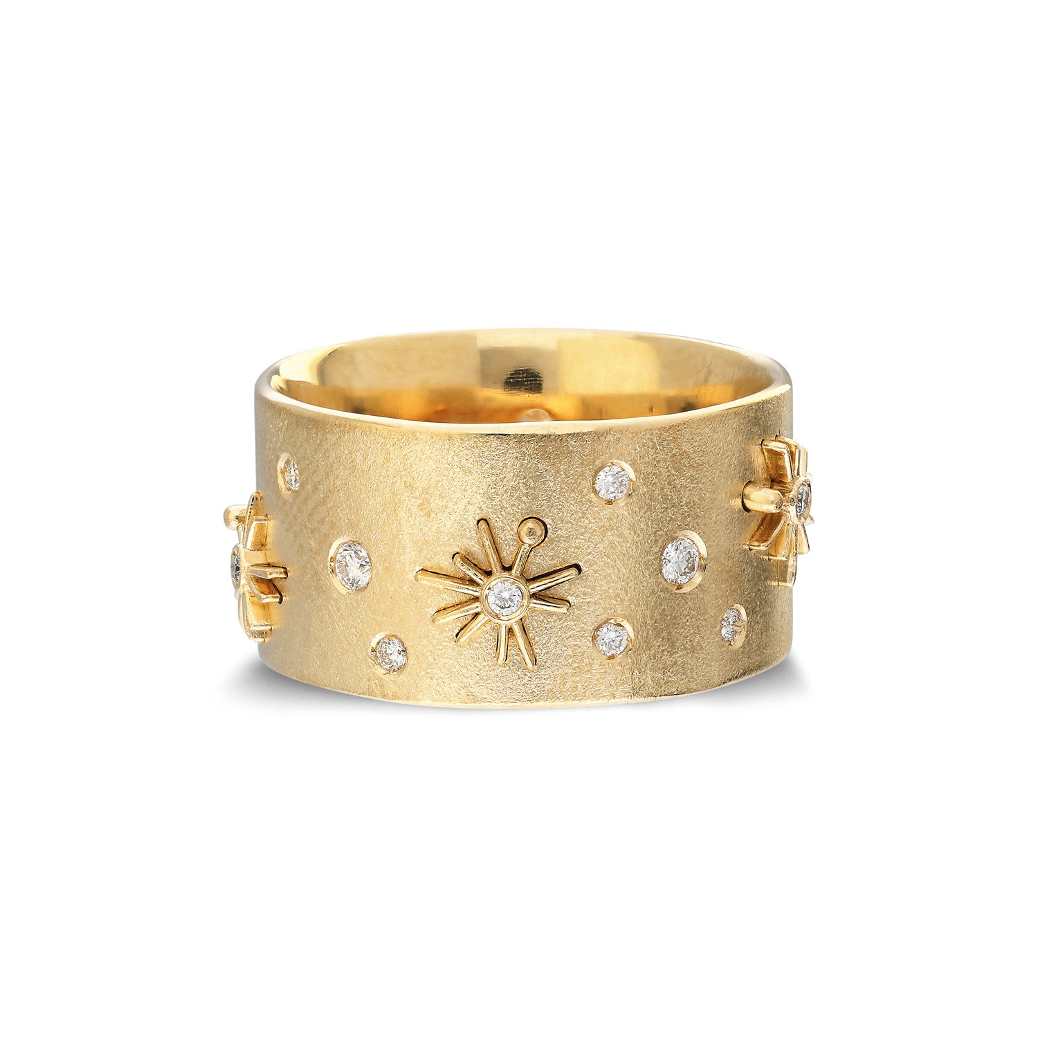 14K Yellow Gold with brushed matte finish, 0.30ctw white diamonds