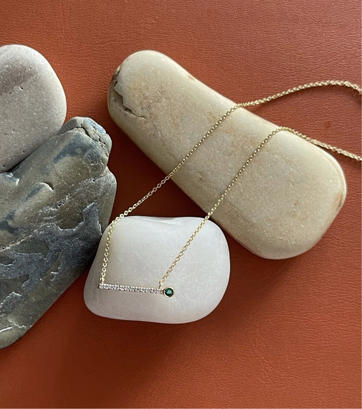 ¡Buenos Días! Small Ray Necklace - White Diamonds and Emerald