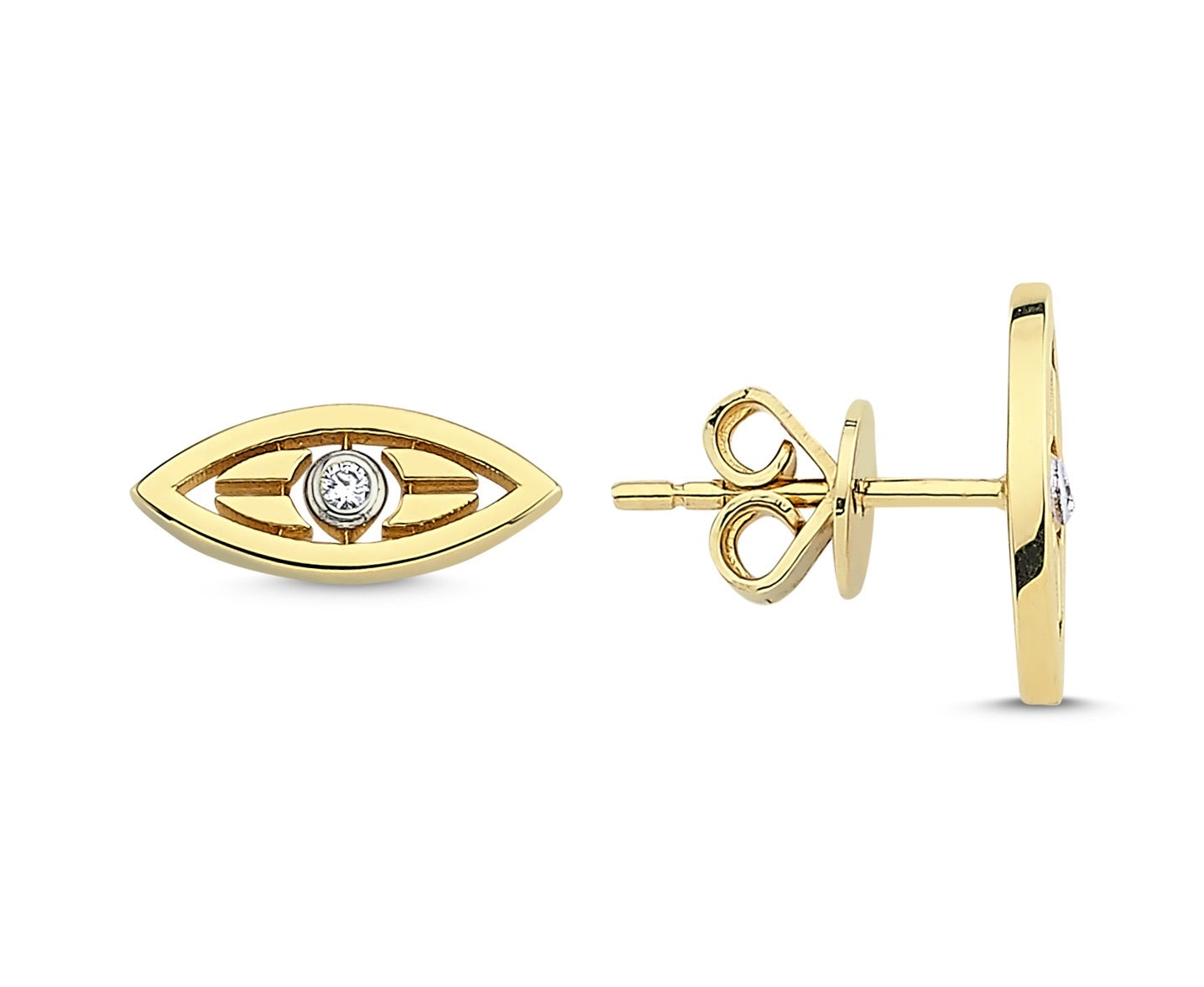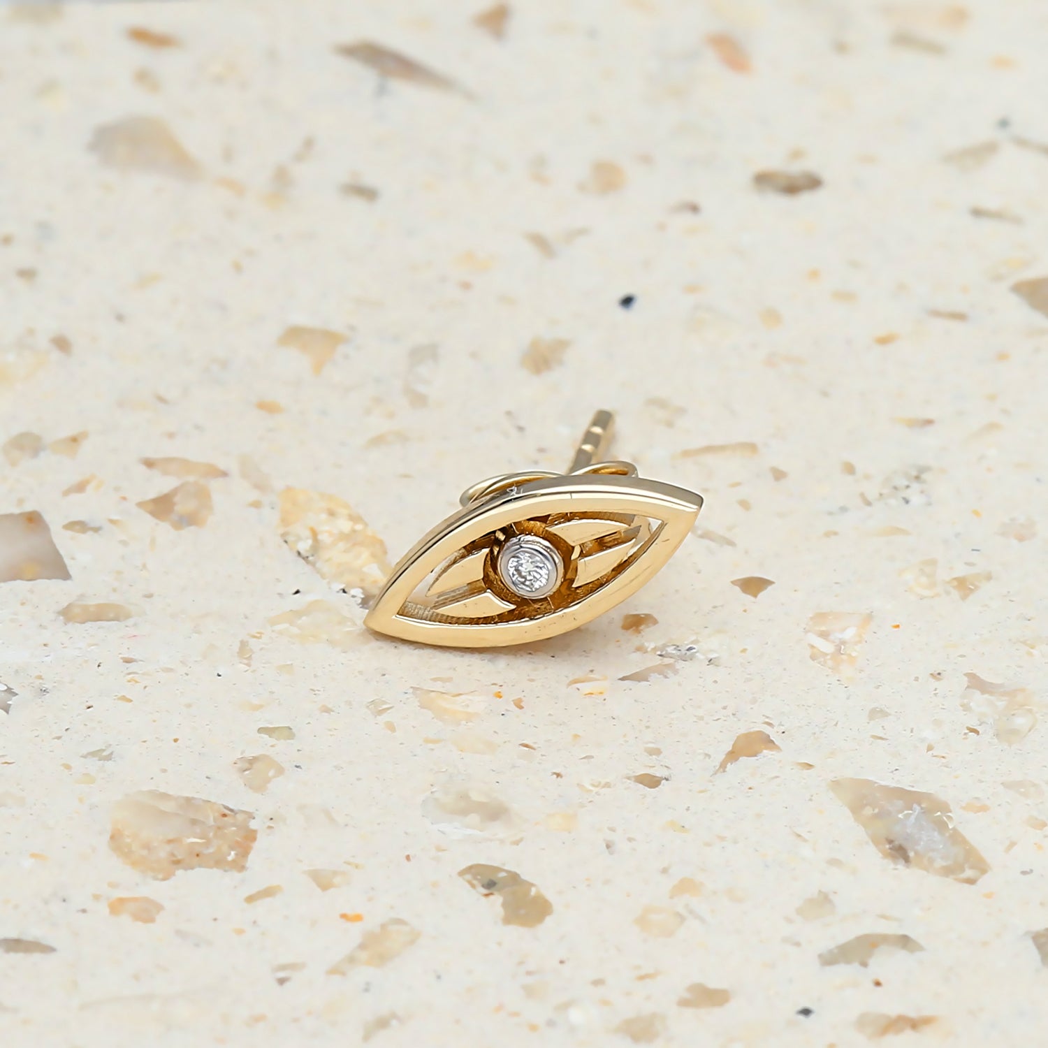 “Mini Macu” Yellow Gold and Diamond Evil Eye Stud Earring