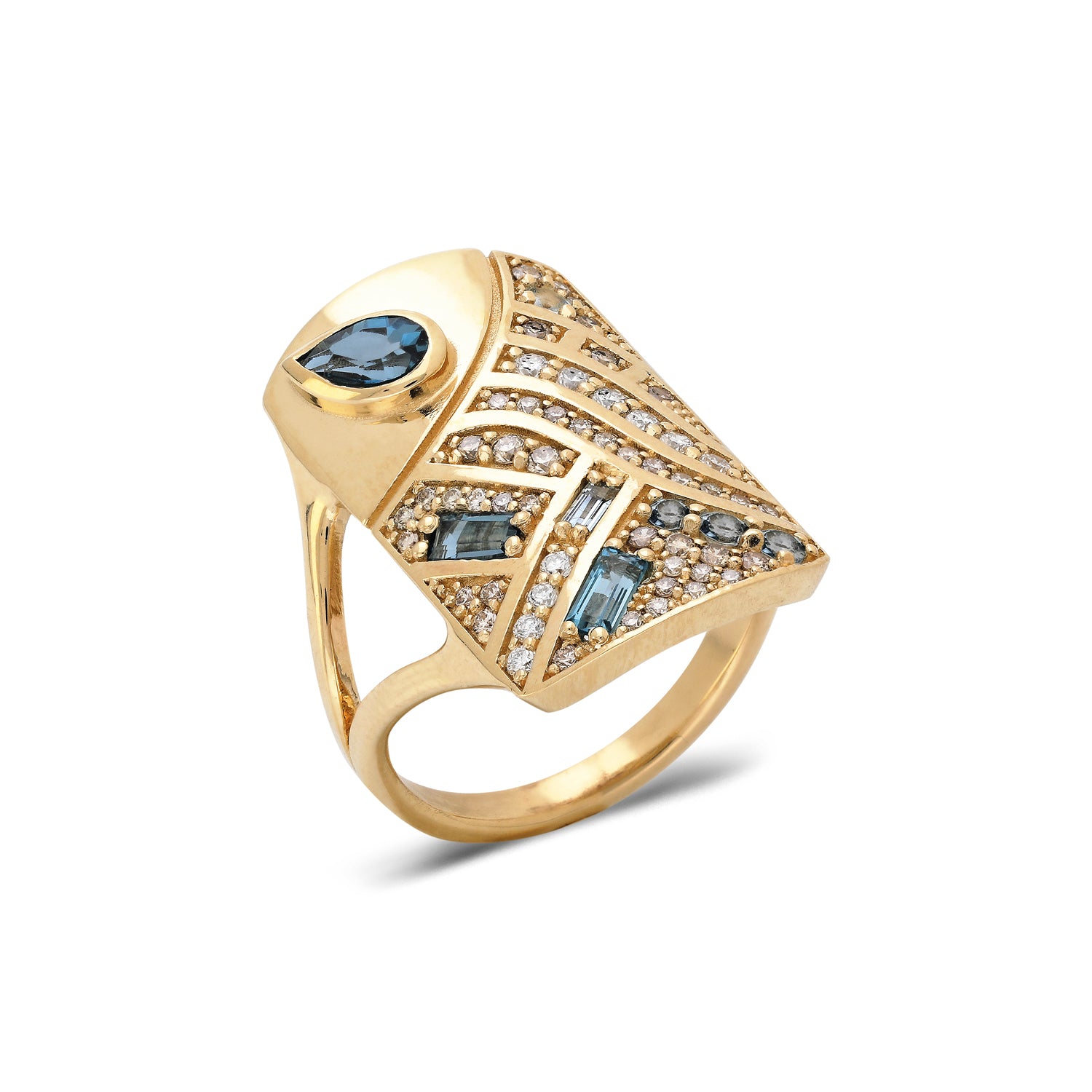 • diamonds, blue topaz pear and sapphire baguettes