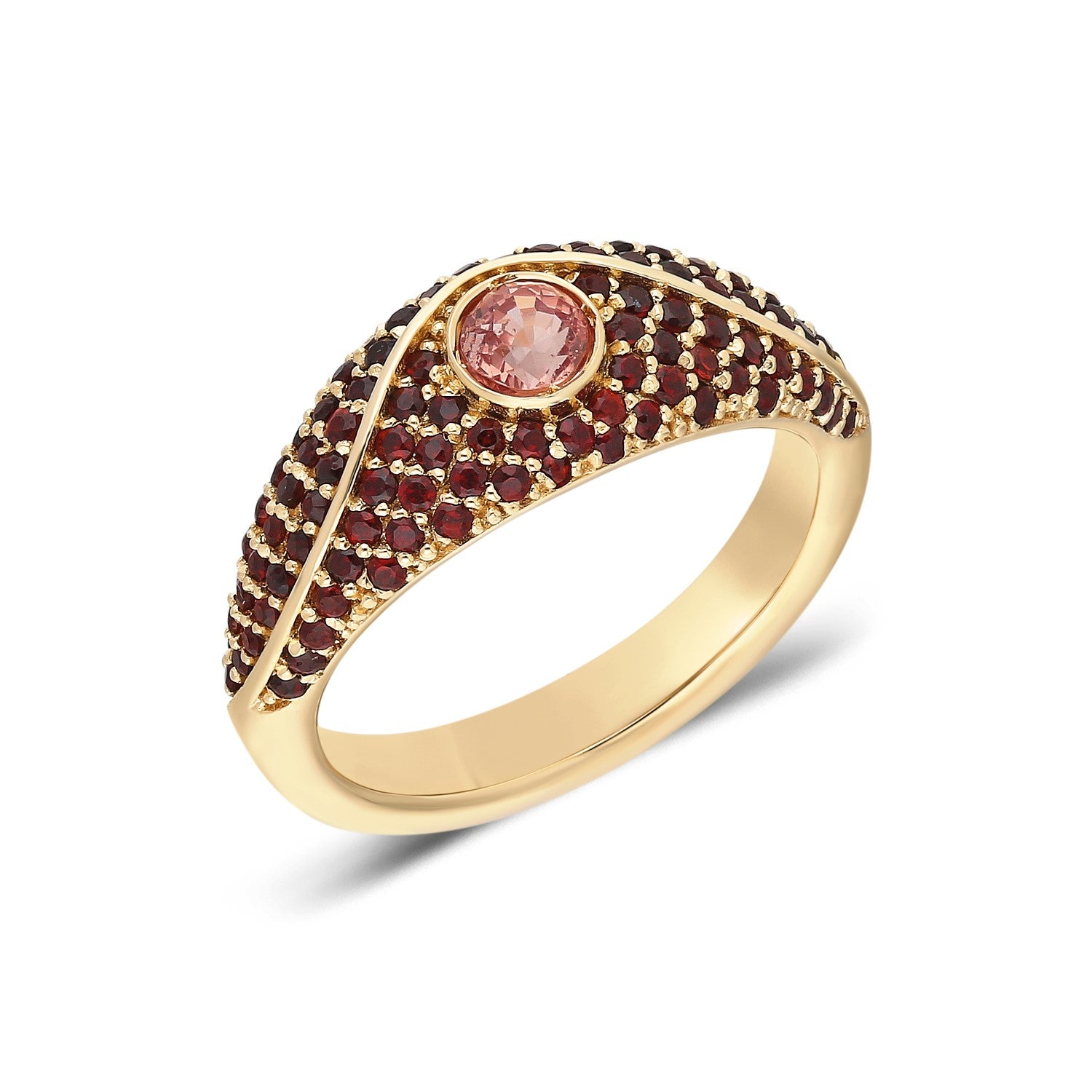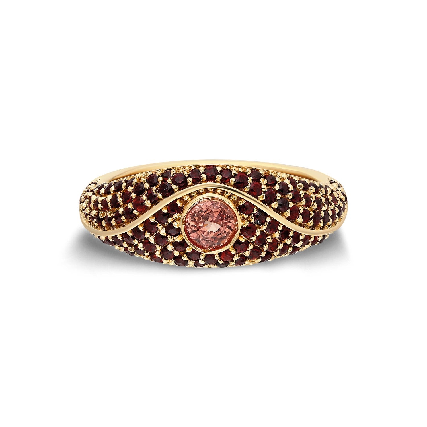 “Acu” Pavé Pinky Ring - Garnets and Padparadscha Sapphire