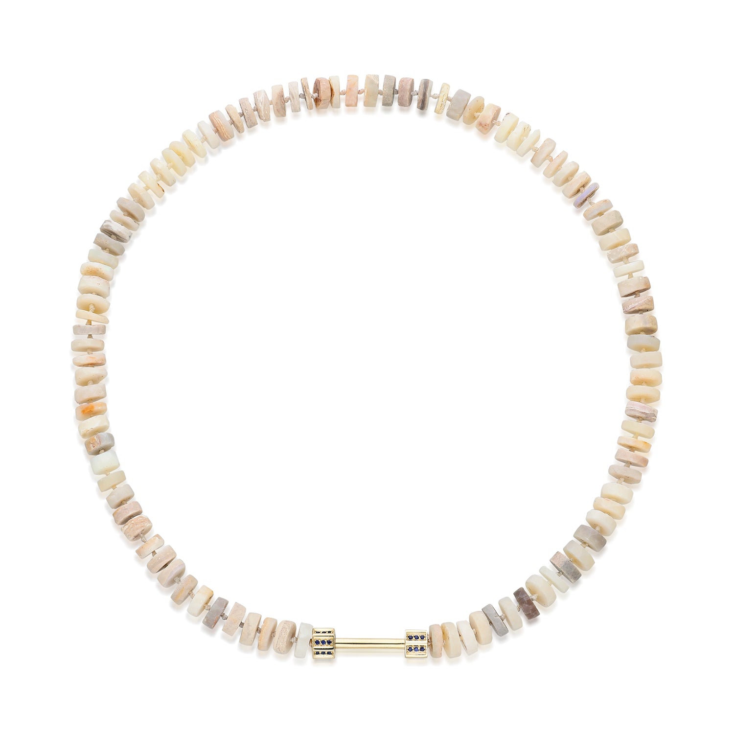 16" faceted disc opal bead strand, 0.36ctw sapphires, 14K yellow gold