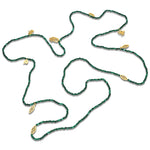 Lovingly named in honor of our first collection Encantada. An enchanting single strand of natural malachite beads with our İTÄ characters in gold-plated silver delicately positioned throughout: the goddess Atabex, our Caribbean evil eye Mini Macu, our Keko coquí and a Txirimiri swirl. Wear as one long strand or doubled and enjoy them as they catch the light.