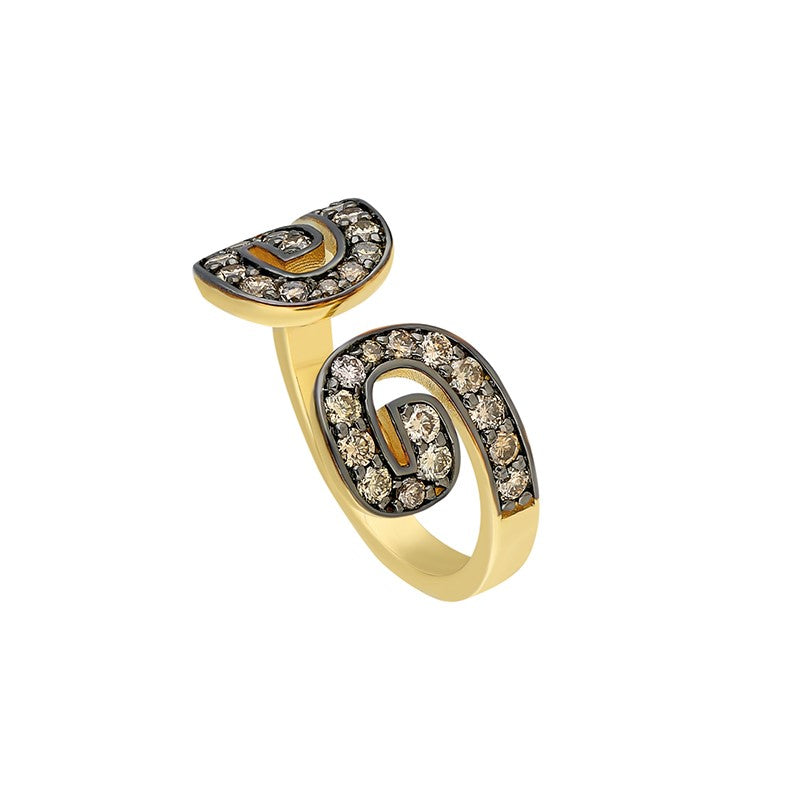 “Txirimiri” Cognac Diamond Bling Ring - Coffee