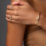 The winding ways of a river, a spiraling wind, one swish of energy. We’ve materialized this universal symbol in solid gold pieces that can be stacked yet are bold enough to be worn alone.