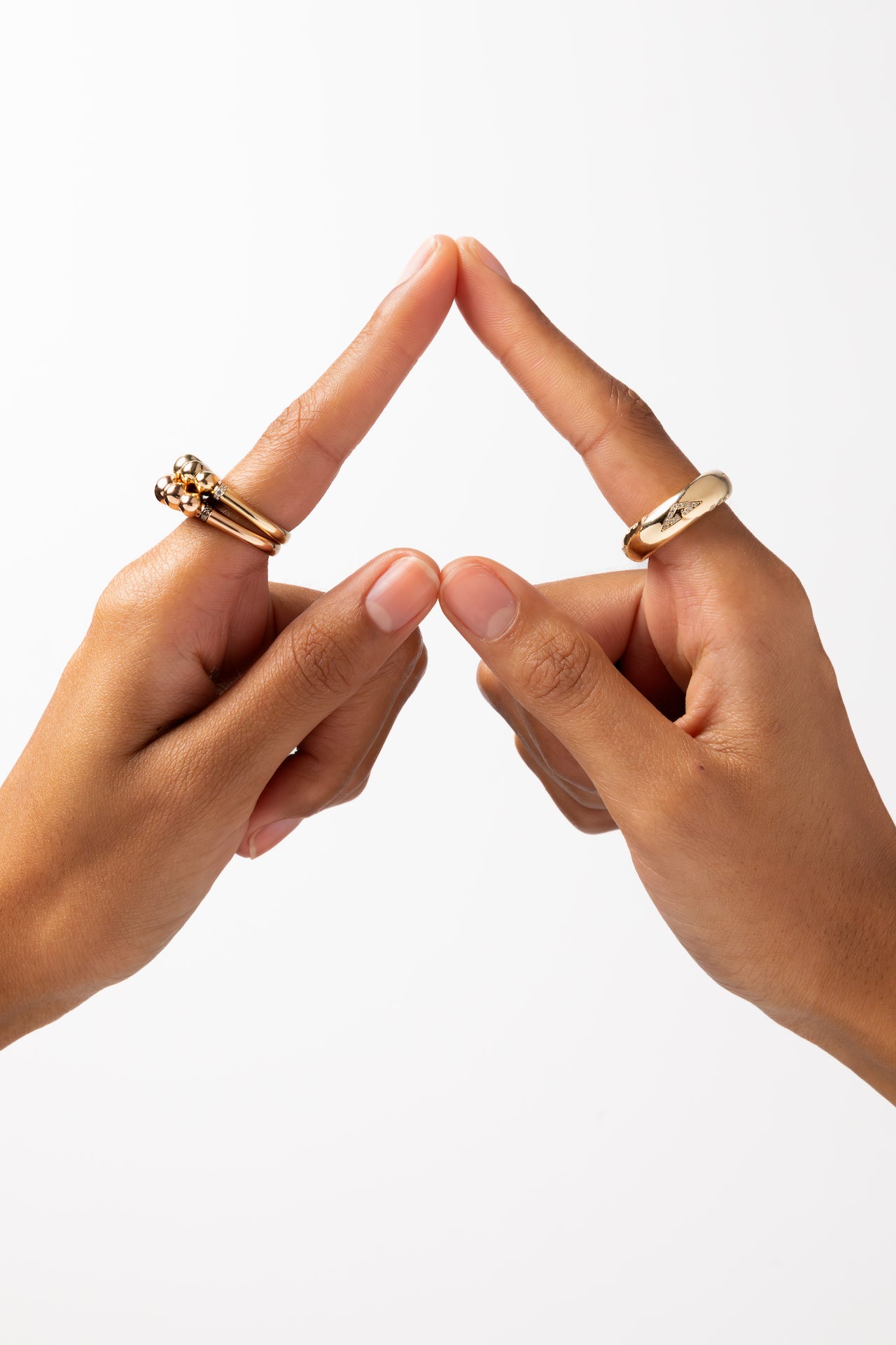 All İTÄ pieces are made of solid 14K yellow, white, or rose gold. Some pieces feature enamel or precious stones, which are ethically sourced.