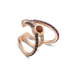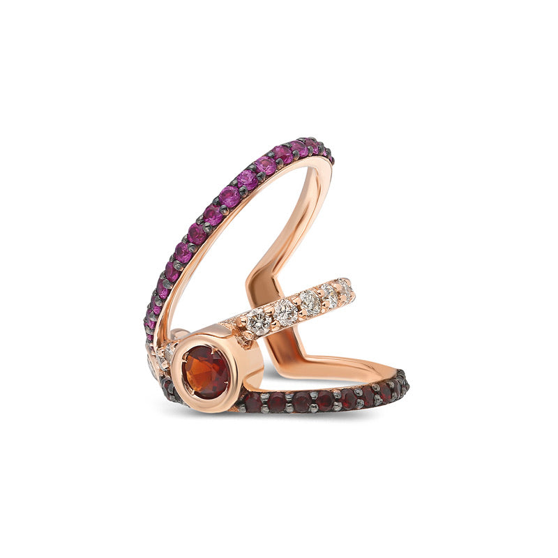 14K Rose Gold, 0.18ctw pink sapphires, 0.18ctw champagne diamonds and 0.37ctw red garnets